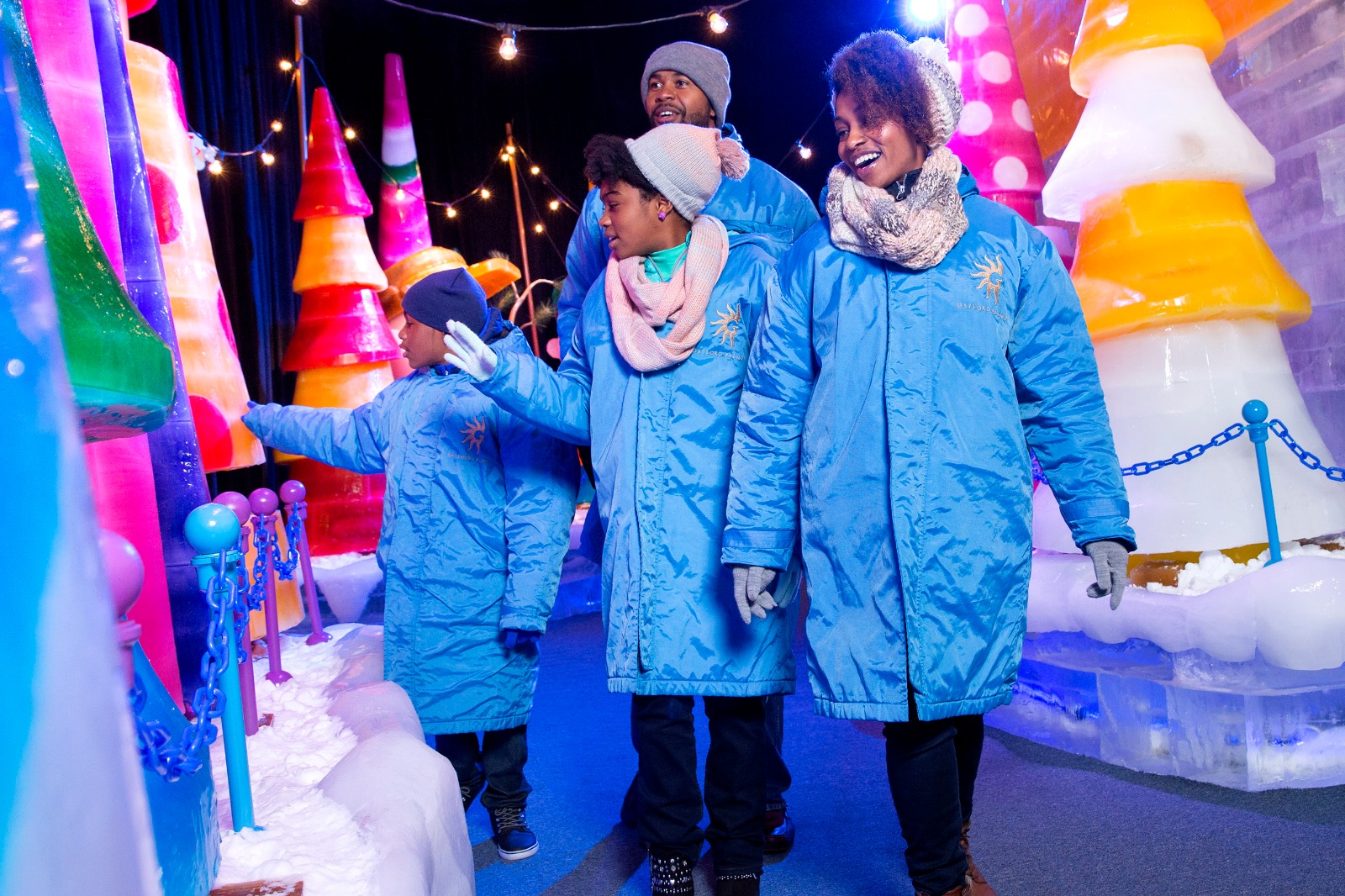 Over at Gaylord Palms Resort & Convention Center, an icy fantasy unfolds with ICE! featuring Rudolph the Red-Nosed Reindeer™. This spectacular experience returns with over two million pounds of hand-carved ice sculptures recreating scenes from the beloved Christmas classic. Guests slip into parkas, walk through glittering tunnels, slide down ice chutes, and pause for fairytale-perfect photos — a whimsical contrast to the warmth outside.