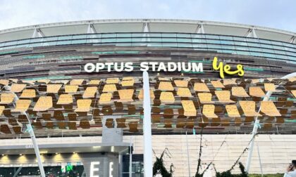 That evening, the Optus Stadium shimmered for the finale — Tourism Western Australia’s ‘Namaste WA’ Mega Famil dinner. The stands lit up with the guests’ logos, turning the vast stadium intimate.