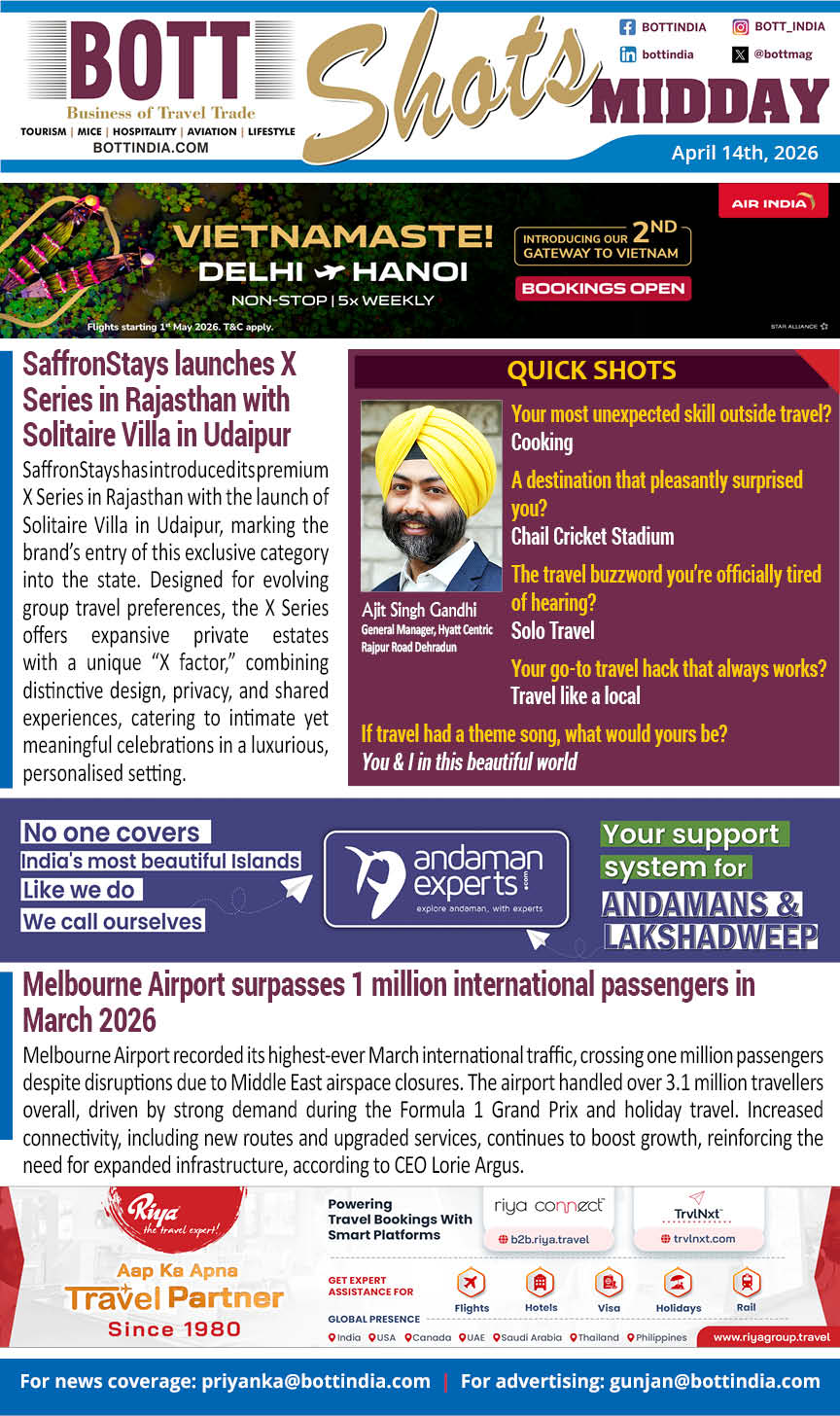 Get your quick dose of top travel, tourism, and hospitality news during the day along with key appointments, visa updates, and a dash of fun with rapid-fire bites —all in a crisp, engaging format!