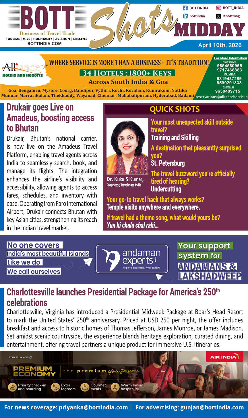 Drukair, Bhutan’s national carrier, is now live on the Amadeus Travel Platform, enabling travel agents across India to seamlessly search, book, and manage its flights. The integration enhances the airline’s visibility and accessibility, allowing agents to access fares, schedules, and inventory with ease. Operating from Paro International Airport, Drukair connects Bhutan with key Asian cities, strengthening its reach in the Indian travel market.