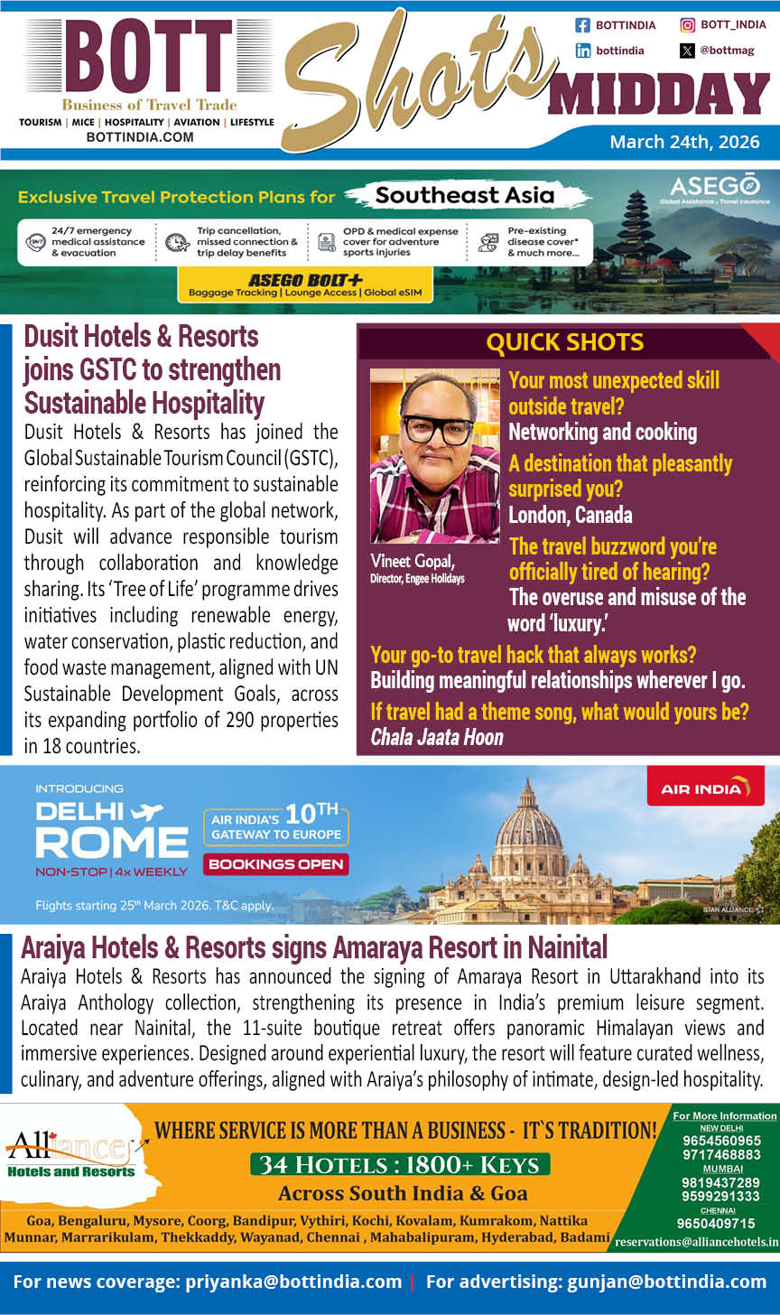 Araiya Hotels & Resorts has announced the signing of Amaraya Resort in Uttarakhand into its Araiya Anthology collection, strengthening its presence in India’s premium leisure segment. Located near Nainital, the 11-suite boutique retreat offers panoramic Himalayan views and immersive experiences. Designed around experiential luxury, the resort will feature curated wellness, culinary, and adventure offerings, aligned with Araiya’s philosophy of intimate, design-led hospitality.