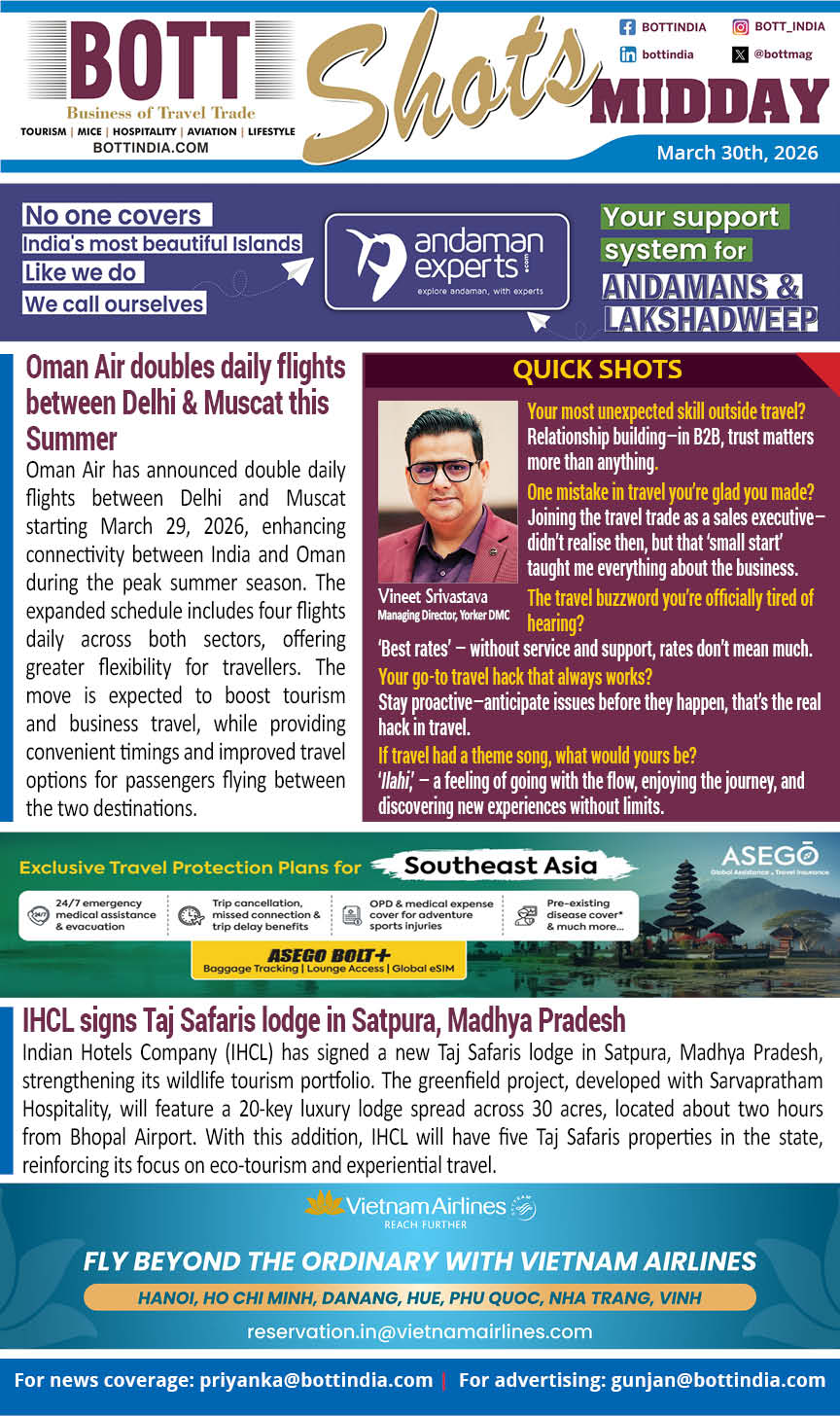 Get your quick dose of top travel, tourism, and hospitality news during the day along with key appointments, visa updates, and a dash of fun with rapid-fire bites —all in a crisp, engaging format!