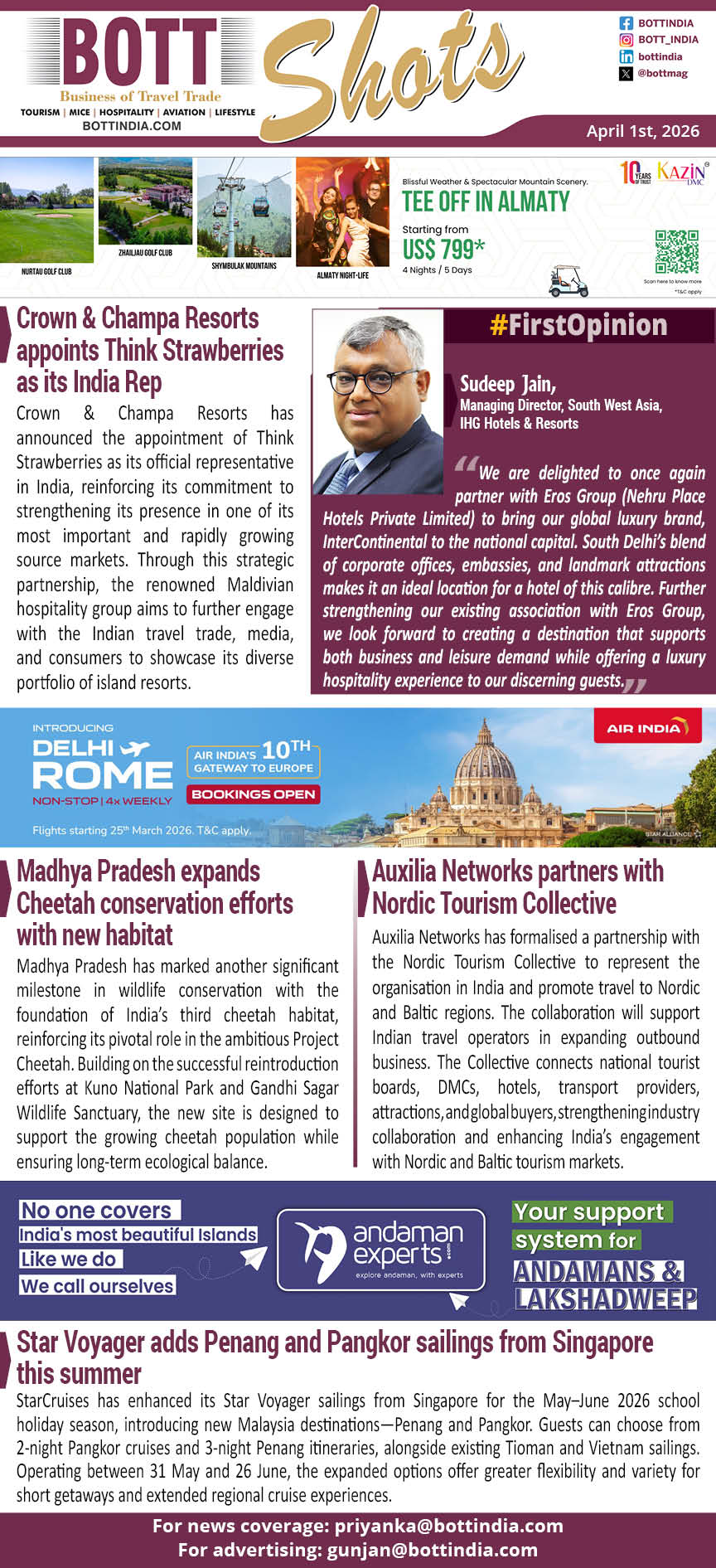 Crown & Champa Resorts has announced the appointment of Think Strawberries as its official representative in India, reinforcing its commitment to strengthening its presence in one of its most important and rapidly growing source markets. Through this strategic partnership, the renowned Maldivian hospitality group aims to further engage with the Indian travel trade, media, and consumers to showcase its diverse portfolio of island resorts.