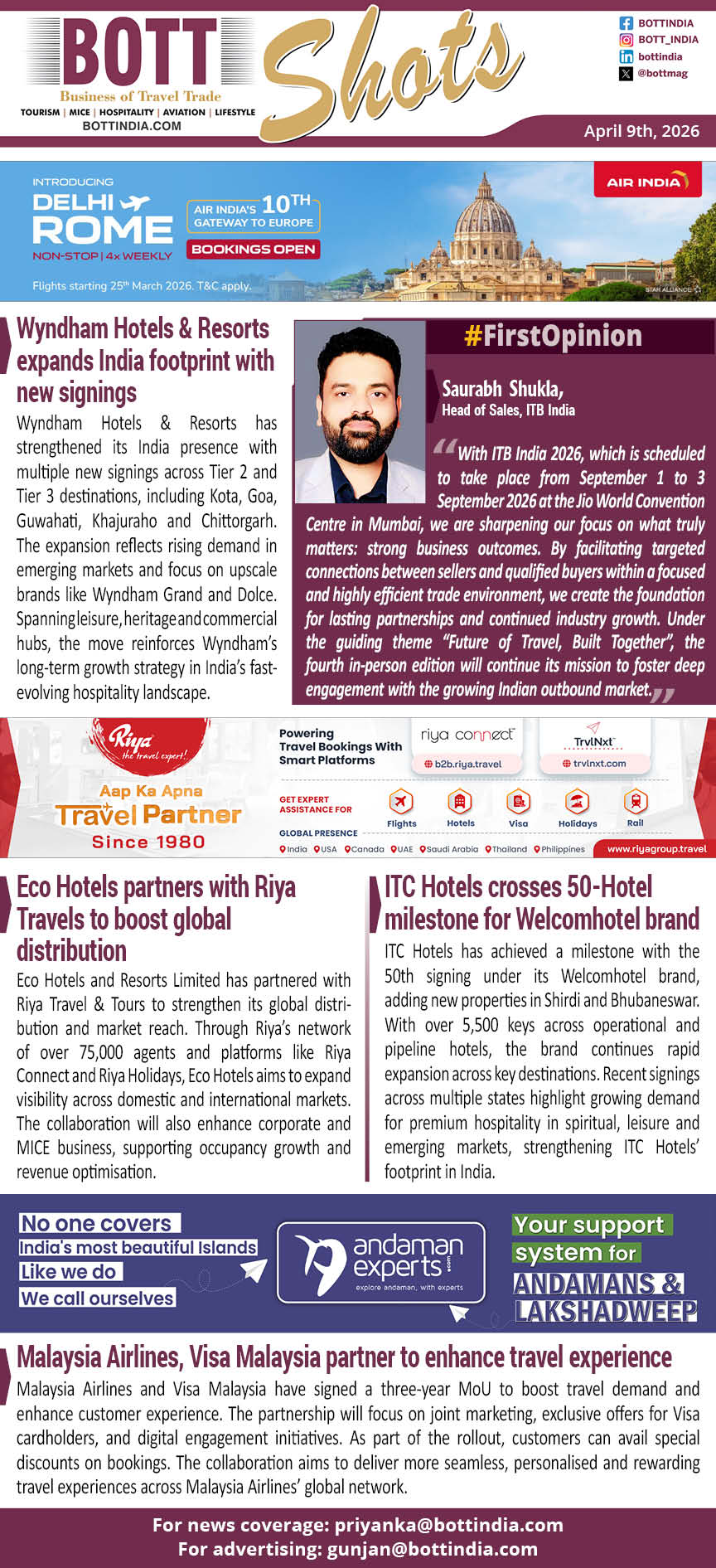 Eco Hotels and Resorts Limited has partnered with Riya Travel & Tours to strengthen its global distribution and market reach. Through Riya’s network of over 75,000 agents and platforms like Riya Connect and Riya Holidays, Eco Hotels aims to expand visibility across domestic and international markets. The collaboration will also enhance corporate and MICE business, supporting occupancy growth and revenue optimisation.