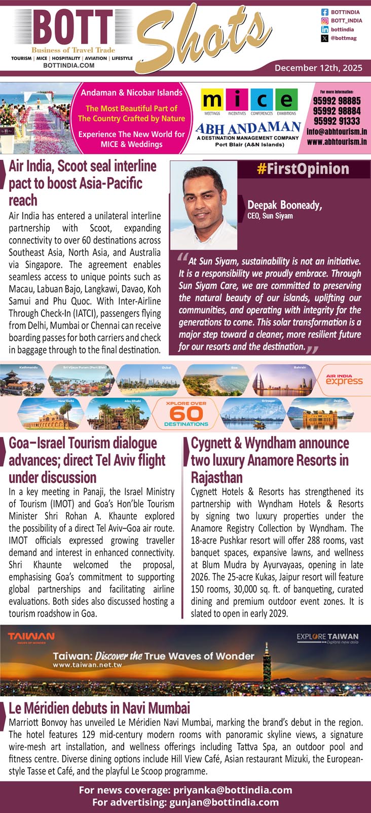 Air India has entered a unilateral interline partnership with Scoot, expanding connectivity to over 60 destinations across Southeast Asia, North Asia, and Australia via Singapore. The agreement enables seamless access to unique points such as Macau, Labuan Bajo, Langkawi, Davao, Koh Samui and Phu Quoc. With Inter-Airline Through Check-In (IATCI), passengers flying from Delhi, Mumbai or Chennai can receive boarding passes for both carriers and check in baggage through to the final destination.