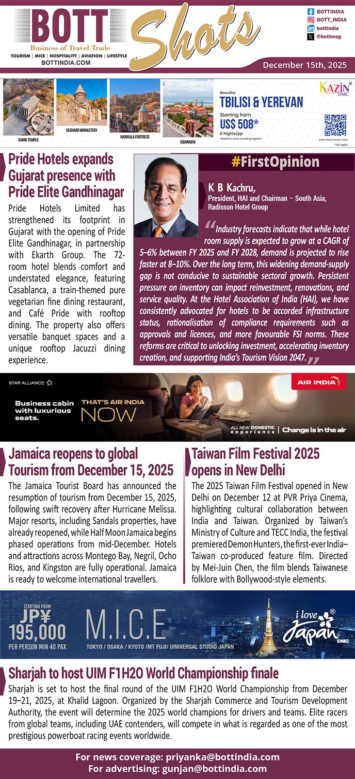“Industry forecasts indicate that while hotel room supply is expected to grow at a CAGR of 5–6% between FY 2025 and FY 2028, demand is projected to rise faster at 8–10%. Over the long term, this widening demand-supply gap is not conducive to sustainable sectoral growth. Persistent pressure on inventory can impact reinvestment, renovations, and service quality. At the Hotel Association of India (HAI), we have consistently advocated for hotels to be accorded infrastructure status, rationalisation of compliance requirements such as approvals and licences, and more favourable FSI norms. These reforms are critical to unlocking investment, accelerating inventory creation, and supporting India’s Tourism Vision 2047.”