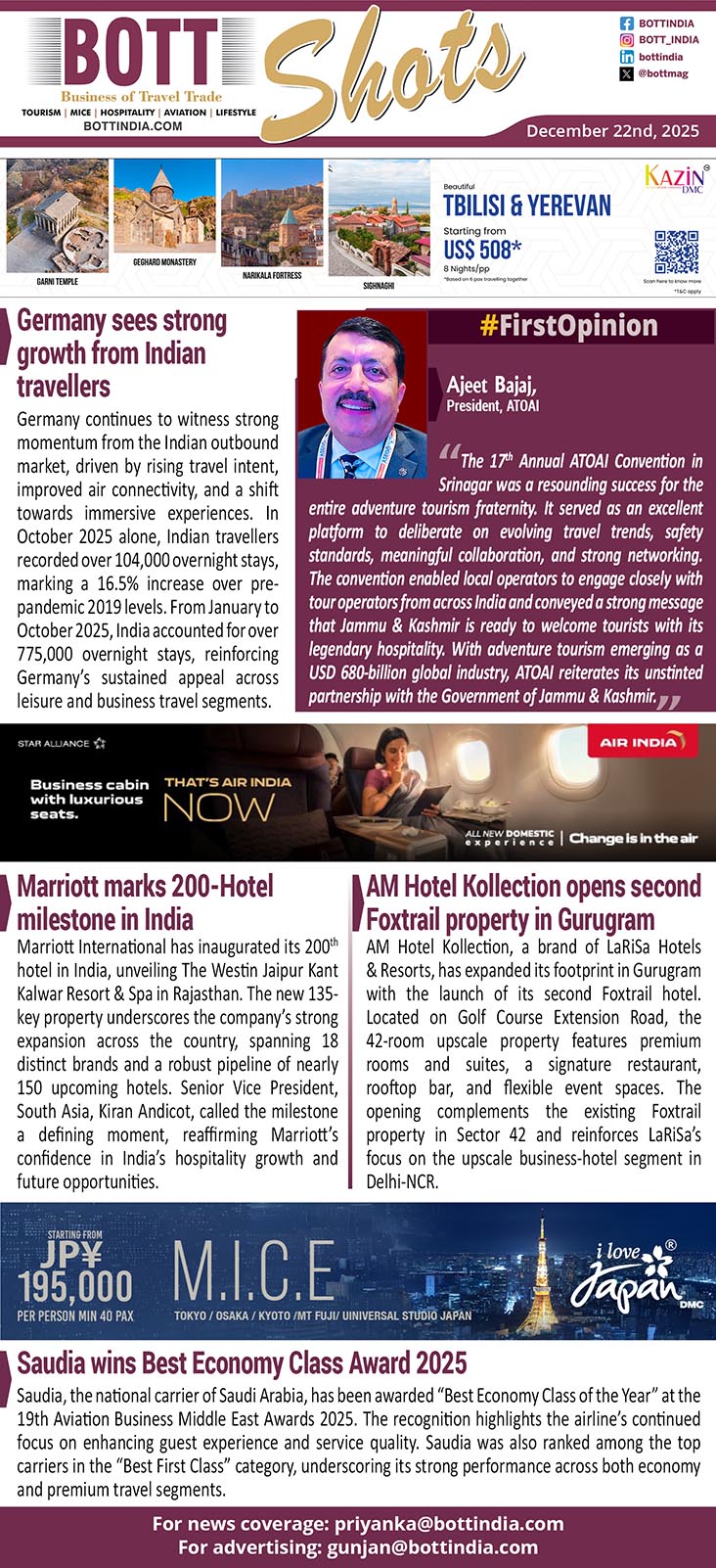 “The 17th Annual ATOAI Convention in Srinagar was a resounding success for the entire adventure tourism fraternity. It served as an excellent platform to deliberate on evolving travel trends, safety standards, meaningful collaboration, and strong networking. The convention enabled local operators to engage closely with tour operators from across India and conveyed a strong message that Jammu & Kashmir is ready to welcome tourists with its legendary hospitality. With adventure tourism emerging as a USD 680-billion global industry, ATOAI reiterates its unstinted partnership with the Government of Jammu & Kashmir.”