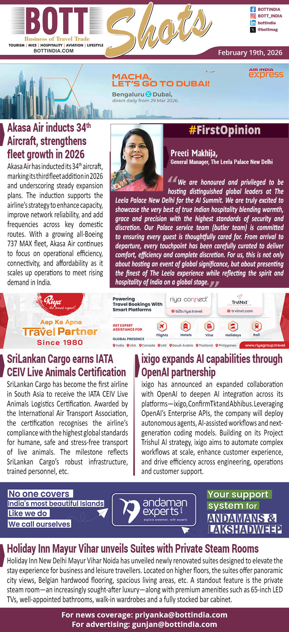 Holiday Inn New Delhi Mayur Vihar Noida has unveiled newly renovated suites designed to elevate the stay experience for business and leisure travellers. Located on higher floors, the suites offer panoramic city views, Belgian hardwood flooring, spacious living areas, etc. A standout feature is the private steam room—an increasingly sought-after luxury—along with premium amenities such as 65-inch LED TVs, well-appointed bathrooms, walk-in wardrobes and a fully stocked bar cabinet.