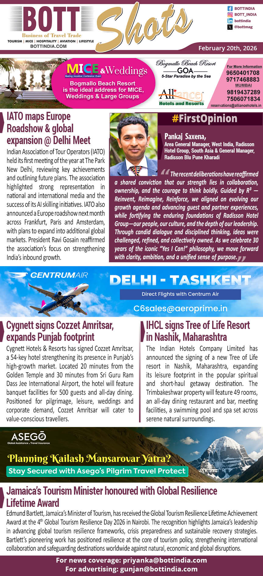 Indian Association of Tour Operators (IATO) held its first meeting of the year at The Park New Delhi, reviewing key achievements and outlining future plans. The association highlighted strong representation in national and international media and the success of its AI skilling initiatives. IATO also announced a Europe roadshow next month across Frankfurt, Paris and Amsterdam, with plans to expand into additional global markets. President Ravi Gosain reaffirmed the association’s focus on strengthening India’s inbound growth.