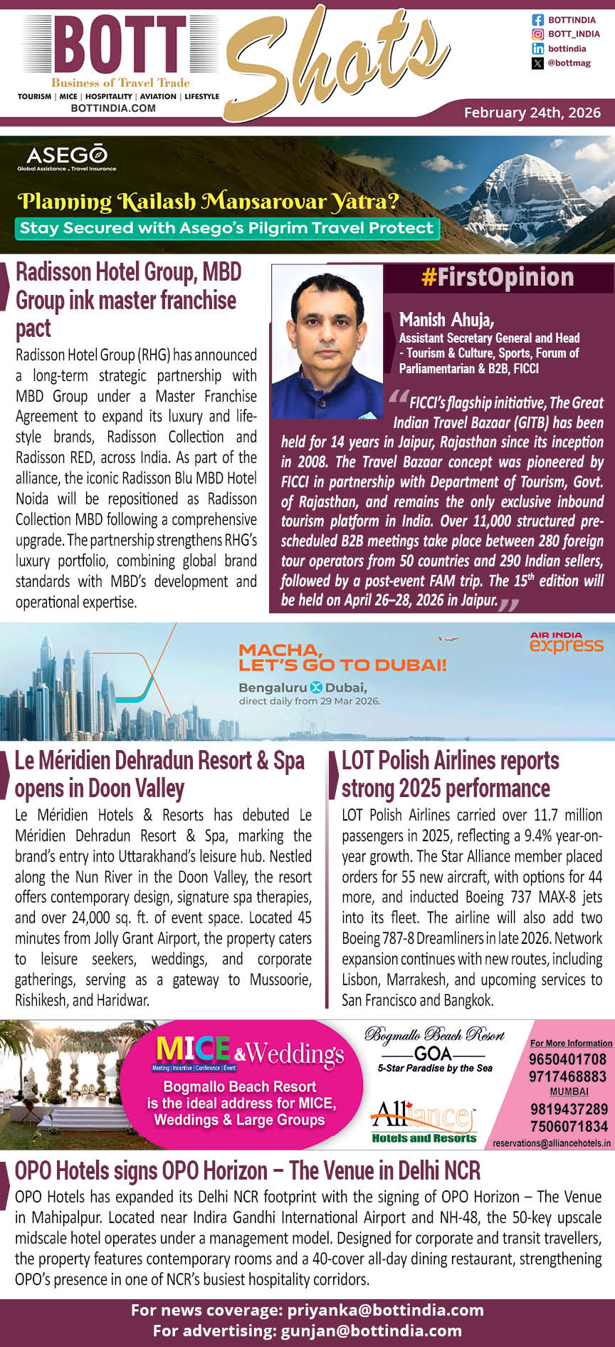OPO Hotels has expanded its Delhi NCR footprint with the signing of OPO Horizon – The Venue in Mahipalpur. Located near Indira Gandhi International Airport and NH-48, the 50-key upscale midscale hotel operates under a management model. Designed for corporate and transit travellers, the property features contemporary rooms and a 40-cover all-day dining restaurant, strengthening OPO’s presence in one of NCR’s busiest hospitality corridors.