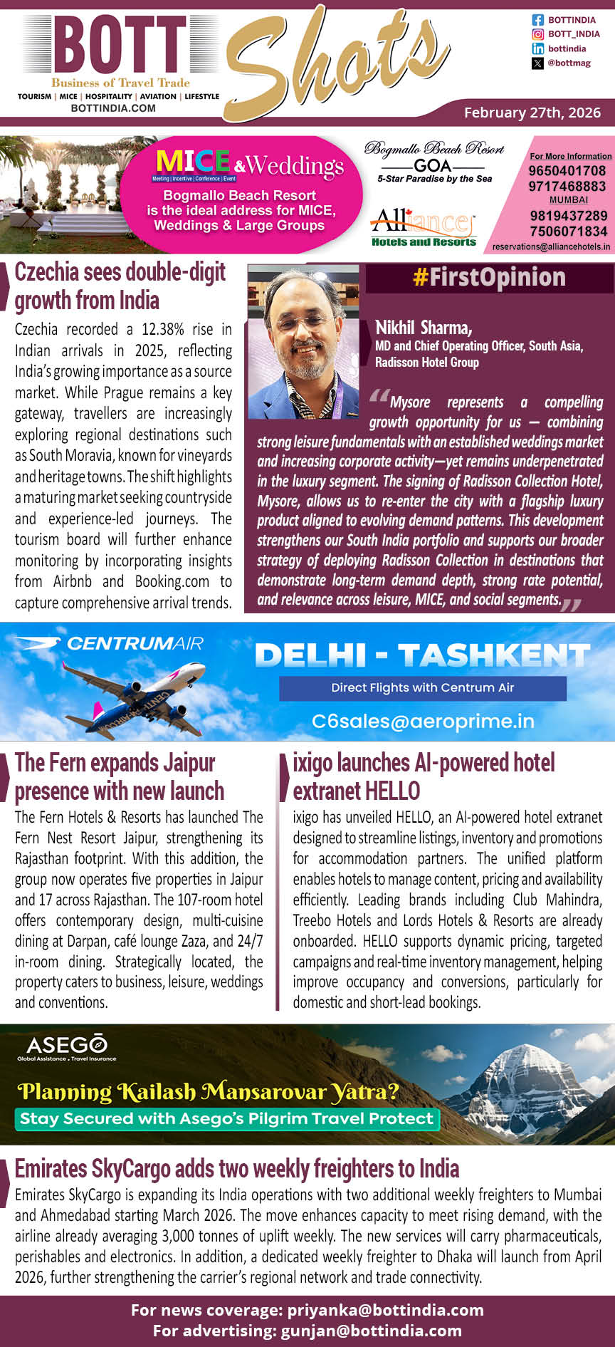 ixigo has unveiled HELLO, an AI-powered hotel extranet designed to streamline listings, inventory and promotions for accommodation partners. The unified platform enables hotels to manage content, pricing and availability efficiently. Leading brands including Club Mahindra, Treebo Hotels and Lords Hotels & Resorts are already onboarded. HELLO supports dynamic pricing, targeted campaigns and real-time inventory management, helping improve occupancy and conversions, particularly for domestic and short-lead bookings.