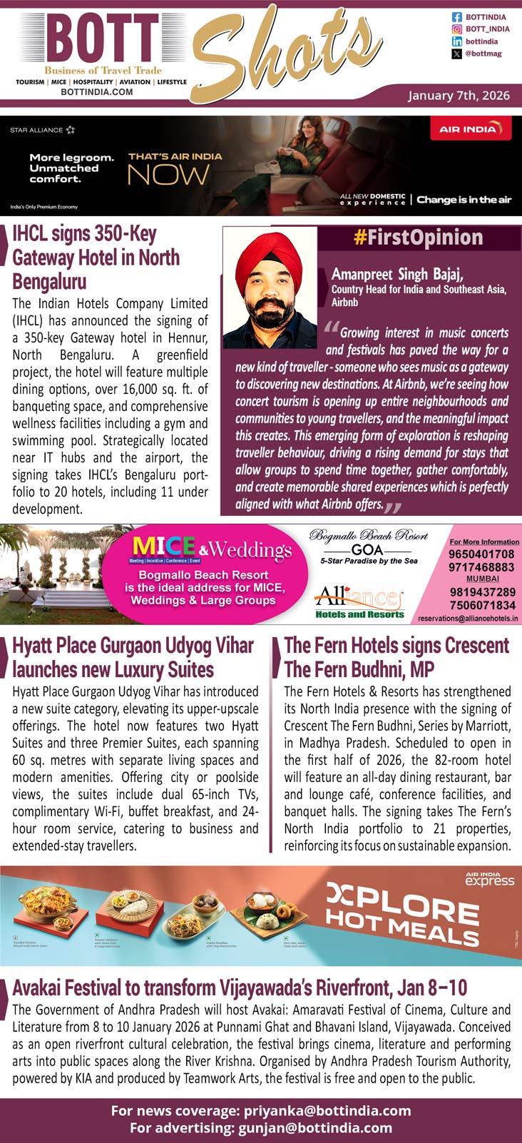 The Fern Hotels & Resorts has strengthened its North India presence with the signing of Crescent The Fern Budhni, Series by Marriott, in Madhya Pradesh. Scheduled to open in the first half of 2026, the 82-room hotel will feature an all-day dining restaurant, bar and lounge café, conference facilities, and banquet halls. The signing takes The Fern’s North India portfolio to 21 properties, reinforcing its focus on sustainable expansion.