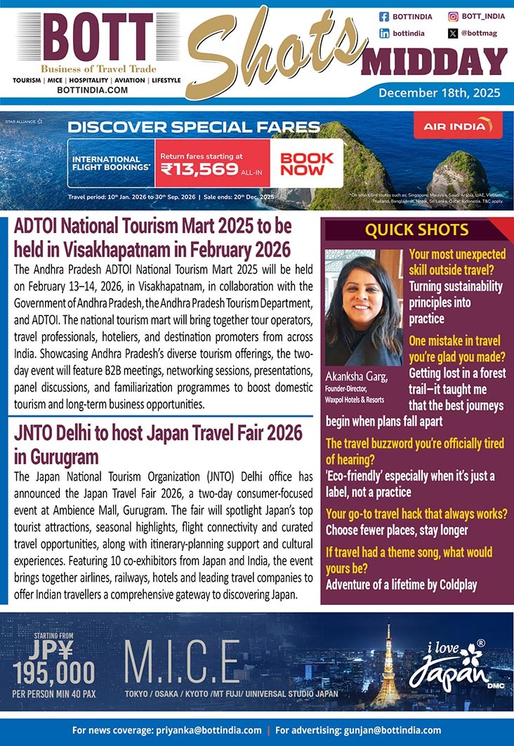 Get your quick dose of top travel, tourism, and hospitality news during the day along with key appointments, visa updates, and a dash of fun with rapid-fire bites —all in a crisp, engaging format!