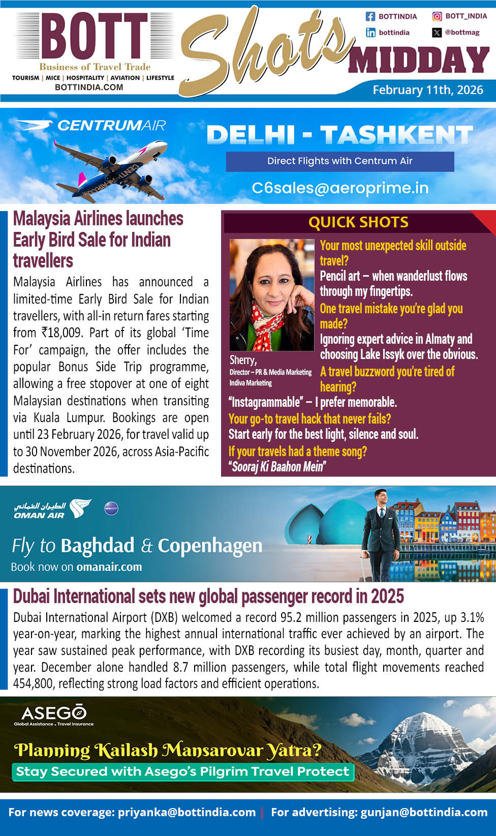 Malaysia Airlines has announced a limited-time Early Bird Sale for Indian travellers, with all-in return fares starting from INR 18,009. Part of its global ‘Time For’ campaign, the offer includes the popular Bonus Side Trip programme, allowing a free stopover at one of eight Malaysian destinations when transiting via Kuala Lumpur. Bookings are open until 23 February 2026, for travel valid up to 30 November 2026, across Asia-Pacific destinations.