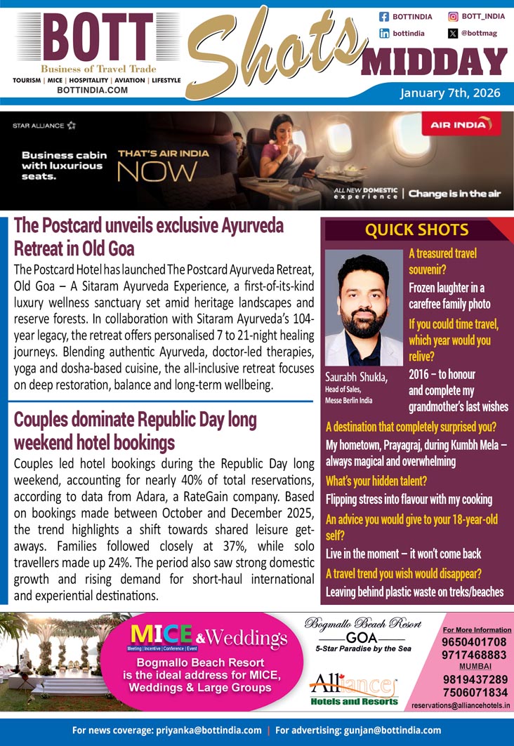The Postcard Hotel has launched The Postcard Ayurveda Retreat, Old Goa – A Sitaram Ayurveda Experience, a first-of-its-kind luxury wellness sanctuary set amid heritage landscapes and reserve forests. In collaboration with Sitaram Ayurveda’s 104-year legacy, the retreat offers personalised 7 to 21-night healing journeys. Blending authentic Ayurveda, doctor-led therapies, yoga and dosha-based cuisine, the all-inclusive retreat focuses on deep restoration, balance and long-term wellbeing.