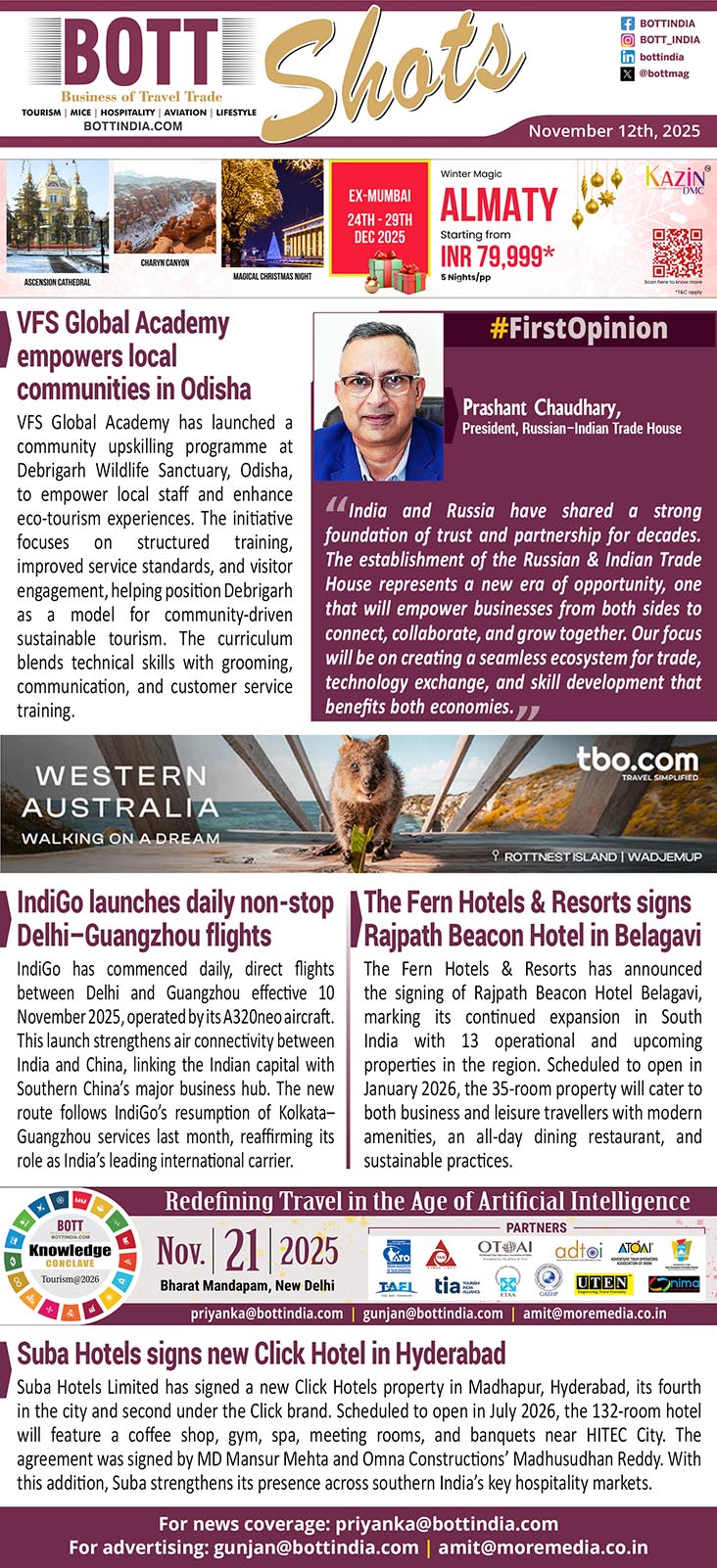 VFS Global Academy has launched a community upskilling programme at Debrigarh Wildlife Sanctuary, Odisha, to empower local staff and enhance eco-tourism experiences. The initiative focuses on structured training, improved service standards, and visitor engagement, helping position Debrigarh as a model for community-driven sustainable tourism. The curriculum blends technical skills with grooming, communication, and customer service training.