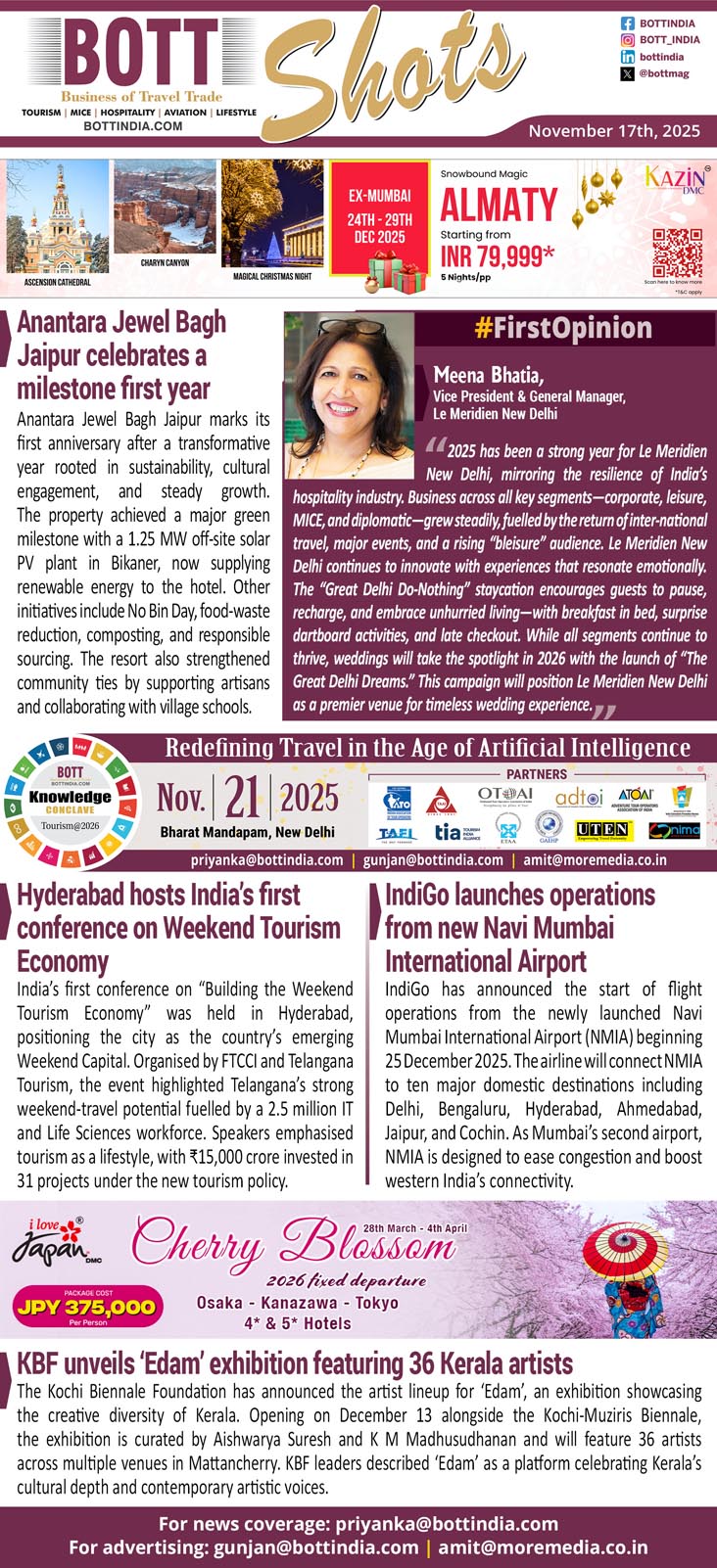 “2025 has been a strong year for Le Meridien New Delhi, mirroring the resilience of India’s hospitality industry. Business across all key segments—corporate, leisure, MICE, and diplomatic—grew steadily, fuelled by the return of international travel, major events, and a rising “bleisure” audience. Le Meridien New Delhi continues to innovate with experiences that resonate emotionally. The “Great Delhi Do-Nothing” staycation encourages guests to pause, recharge, and embrace unhurried living—with breakfast in bed, surprise dartboard activities, and late checkout. While all segments continue to thrive, weddings will take the spotlight in 2026 with the launch of “The Great Delhi Dreams.” This campaign will position Le Meridien New Delhi as a premier venue for timeless wedding experience.”