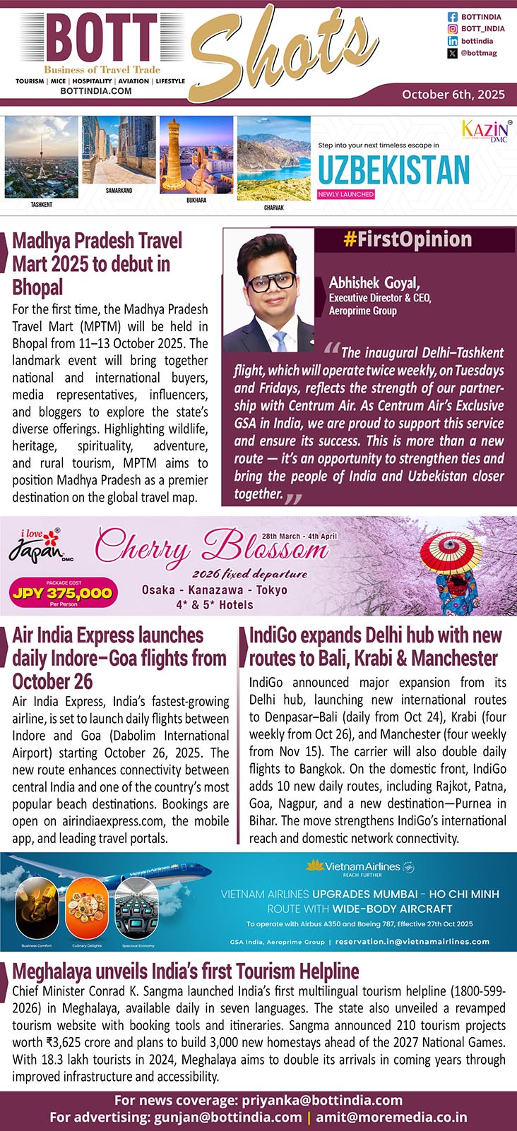 “The inaugural Delhi–Tashkent flight, which will operate twice weekly, on Tuesdays and Fridays, reflects the strength of our partnership with Centrum Air. As Centrum Air’s Exclusive GSA in India, we are proud to support this service and ensure its success. This is more than a new route — it’s an opportunity to strengthen ties and bring the people of India and Uzbekistan closer together.”
