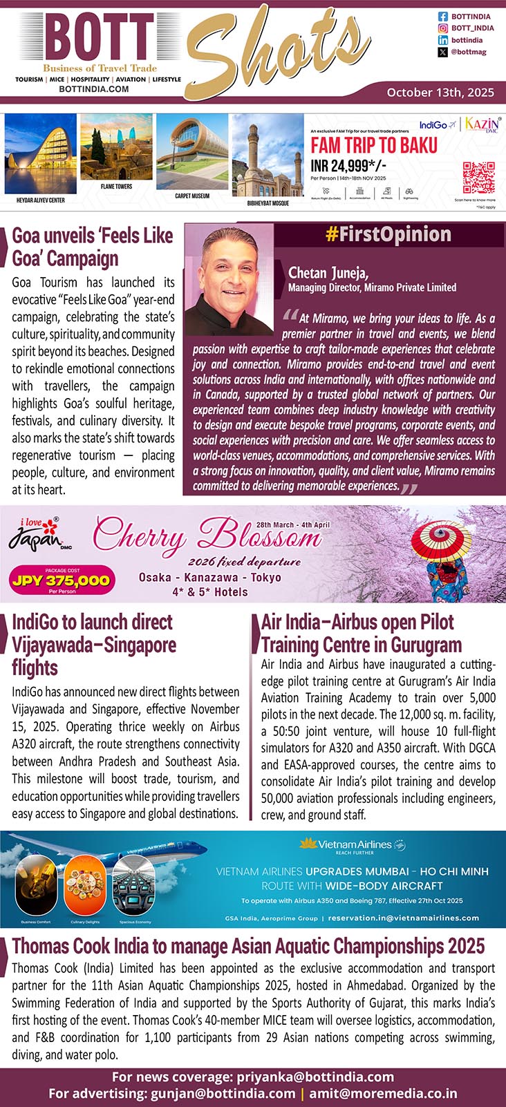 Thomas Cook (India) Limited has been appointed as the exclusive accommodation and transport partner for the 11th Asian Aquatic Championships 2025, hosted in Ahmedabad. Organized by the Swimming Federation of India and supported by the Sports Authority of Gujarat, this marks India’s first hosting of the event. Thomas Cook’s 40-member MICE team will oversee logistics, accommodation, and F&B coordination for 1,100 participants from 29 Asian nations competing across swimming, diving, and water polo.