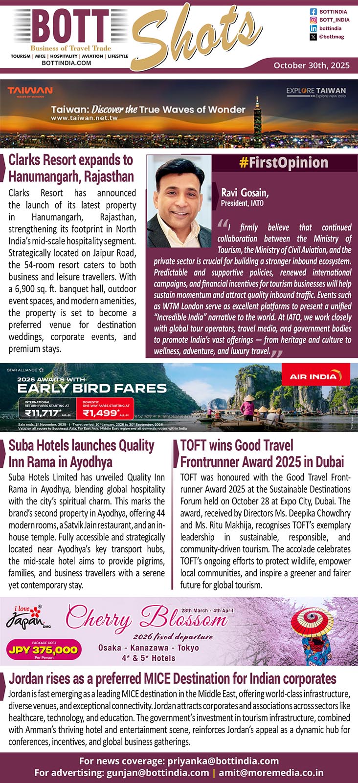 Tags: Breaking Travel NewsBusiness of travel trade IndiaClarks ResortFlight PackagesHospitality NewsHotel InformationLatest Travel & Tourism Industry TrendsMICE newsSuba HotelsTour packagesTourism Breaking NewsTourism NewsTourism News IndiaTravel & Tourism MagazineTravel FashionTravel Industry Newstravel newsTravel PackagesTravel Trade Newstravel trade news IndiaTravel Trade TrendsTravel Young GenerationVisa