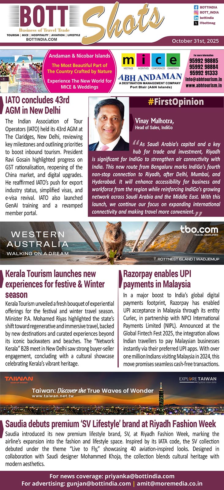 The Indian Association of Tour Operators (IATO) held its 43rd AGM at The Claridges, New Delhi, reviewing key milestones and outlining priorities to boost inbound tourism. President Ravi Gosain highlighted progress on GST rationalisation, reopening of the China market, and digital upgrades. He reaffirmed IATO’s push for export industry status, simplified visas, and e-visa revival. IATO also launched GenAI training and a revamped member portal.