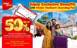 Vietjet Thailand is offering passengers more reasons to travel with exciting benefits in collaboration with leading hotels, shopping malls, restaurants, local stores, and tourist destinations. Travelers can now enjoy up to 50% discount by presenting their Vietjet Thailand boarding pass at participating locations throughout Thailand.