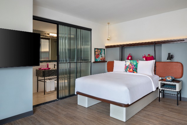 The 101 guestrooms are cleverly designed to maximize space and allow guests the flexibility to adapt the room to their needs. Each room has a smart layout offering a perfect balance of comfort and functionality, featuring plush bedding, walk-in showers, and 55-inch HD Smart TVs, in addition to modular furniture and smart features like motion-activated LED lights, an open compartment layout and peg walls that offer design-forward intuitive solutions to every guest. For those looking to stay active, the hotel also features a thoughtfully designed fitness centre, built to keep up with the lively pace of its guests, whether it’s a quick cardio session or an intense workout.