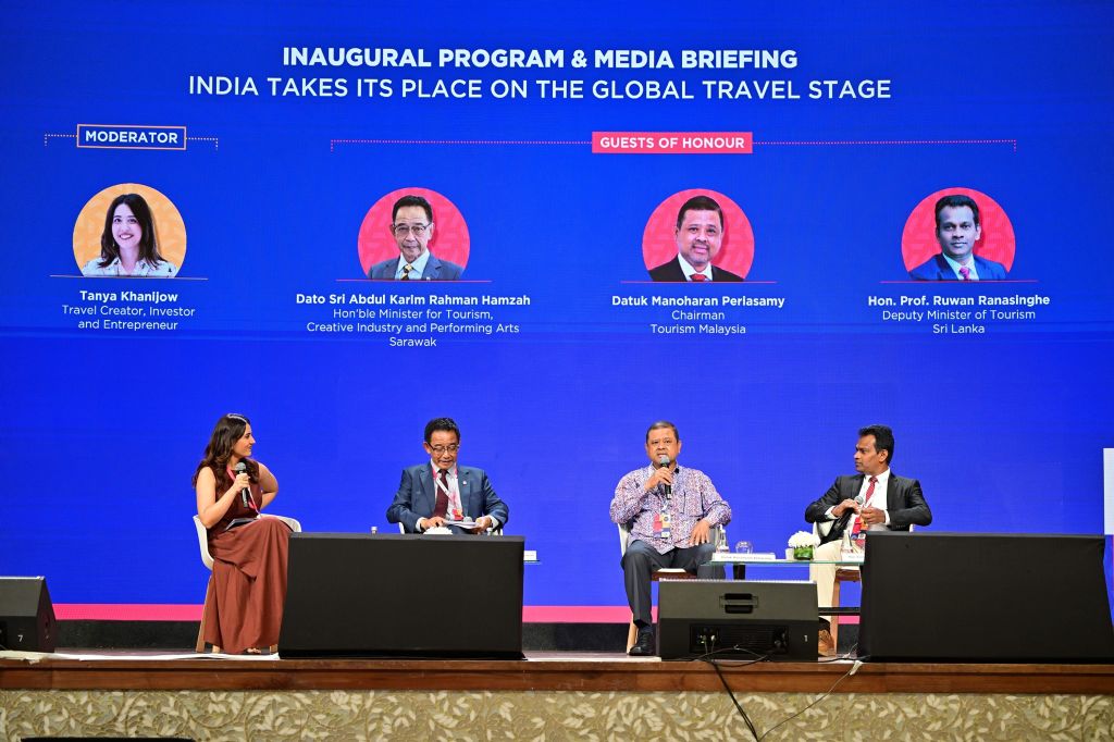 Day 1 of OTM 2026 commenced with the official inauguration of the exhibition, followed by a VIP walk-around and exhibitor interactions, leading into the flagship Inaugural Programme titled “India Takes Its Place on the Global Travel Stage.” The show was inaugurated by Datuk Manoharan Periasamy, Chairman, Tourism Malaysia, Richard Duval, Minister of Tourism of Mauritius; H.E. Dato Sri Abdul Karim Rahman Hamzah, Minister for Tourism, Creative Industry and Performing Arts, Sarawak; and Hon. Prof. Ruwan Ranasinghe, Deputy Minister of Tourism, Sri Lanka, and was moderated by Tanya Khanijow.